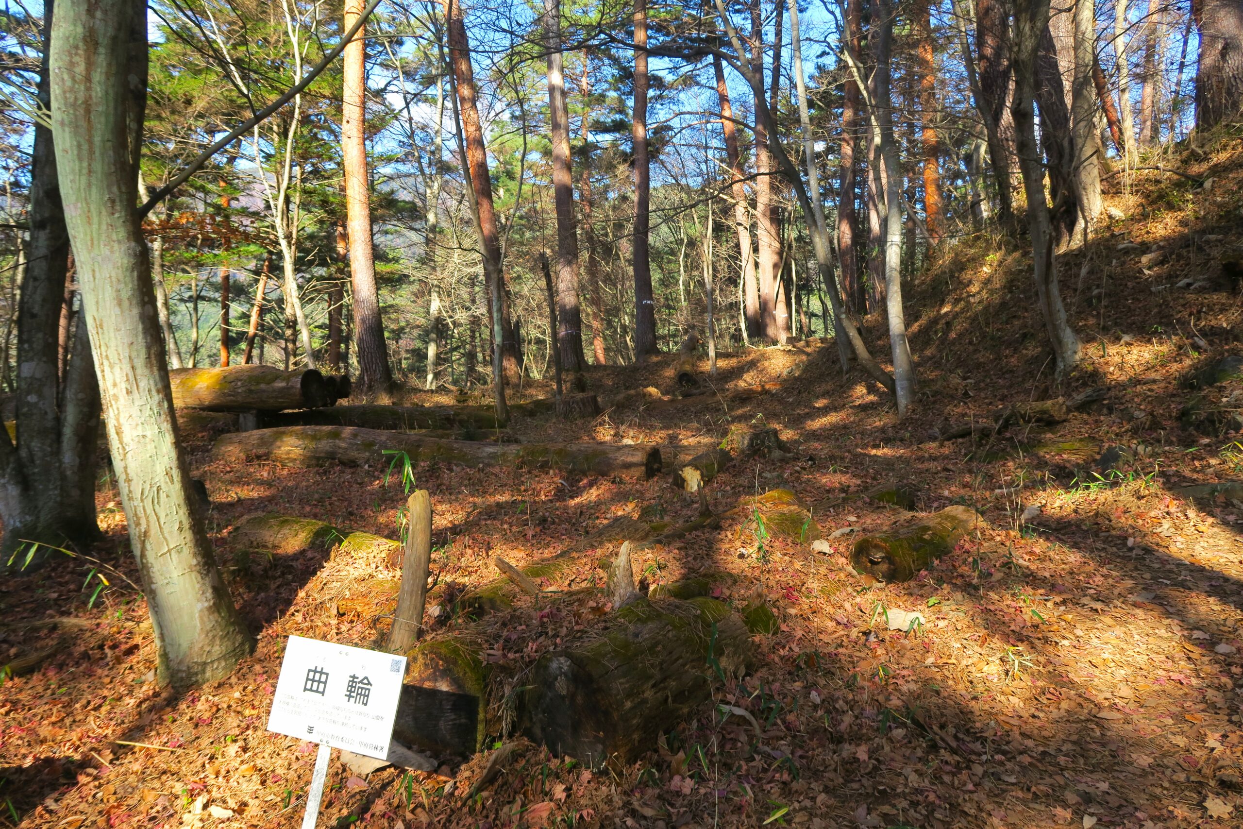 この曲輪はこれまで見て来た小規模なものとは異なり、山腹を大規模に造成して広い平坦面を造っています。ここから主廓部にかけて、階段状に大きな曲輪が連続し、道が何度も折れ曲がり、堅固な造りを見せています。