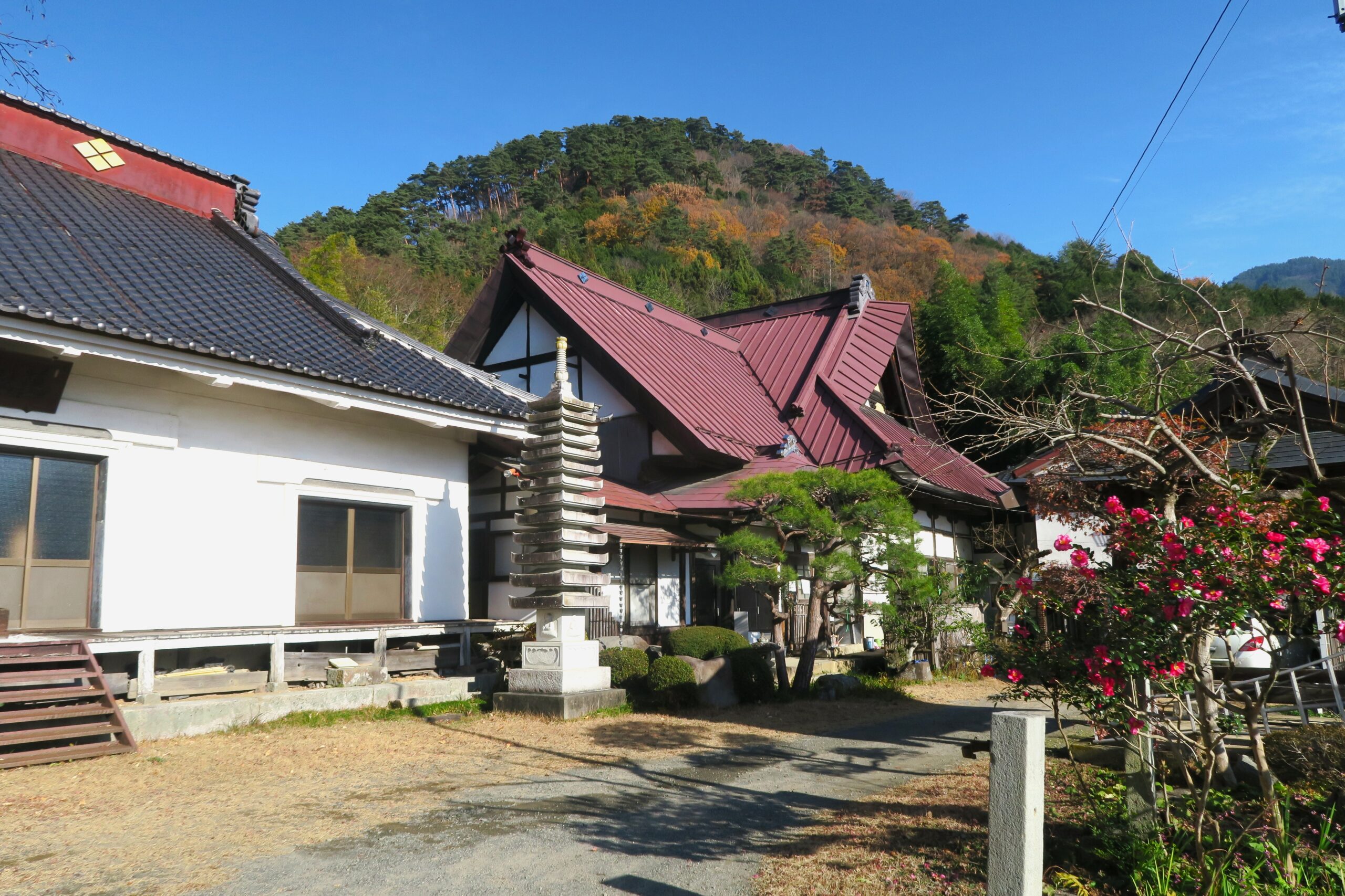 要害山南麓に位置する積翠寺は、行基開創と伝えられる臨済宗妙心寺派の名刹で、境内の清流が巨石にぶつかって滝をなしていたところから、古くは石水寺とも書かれました。