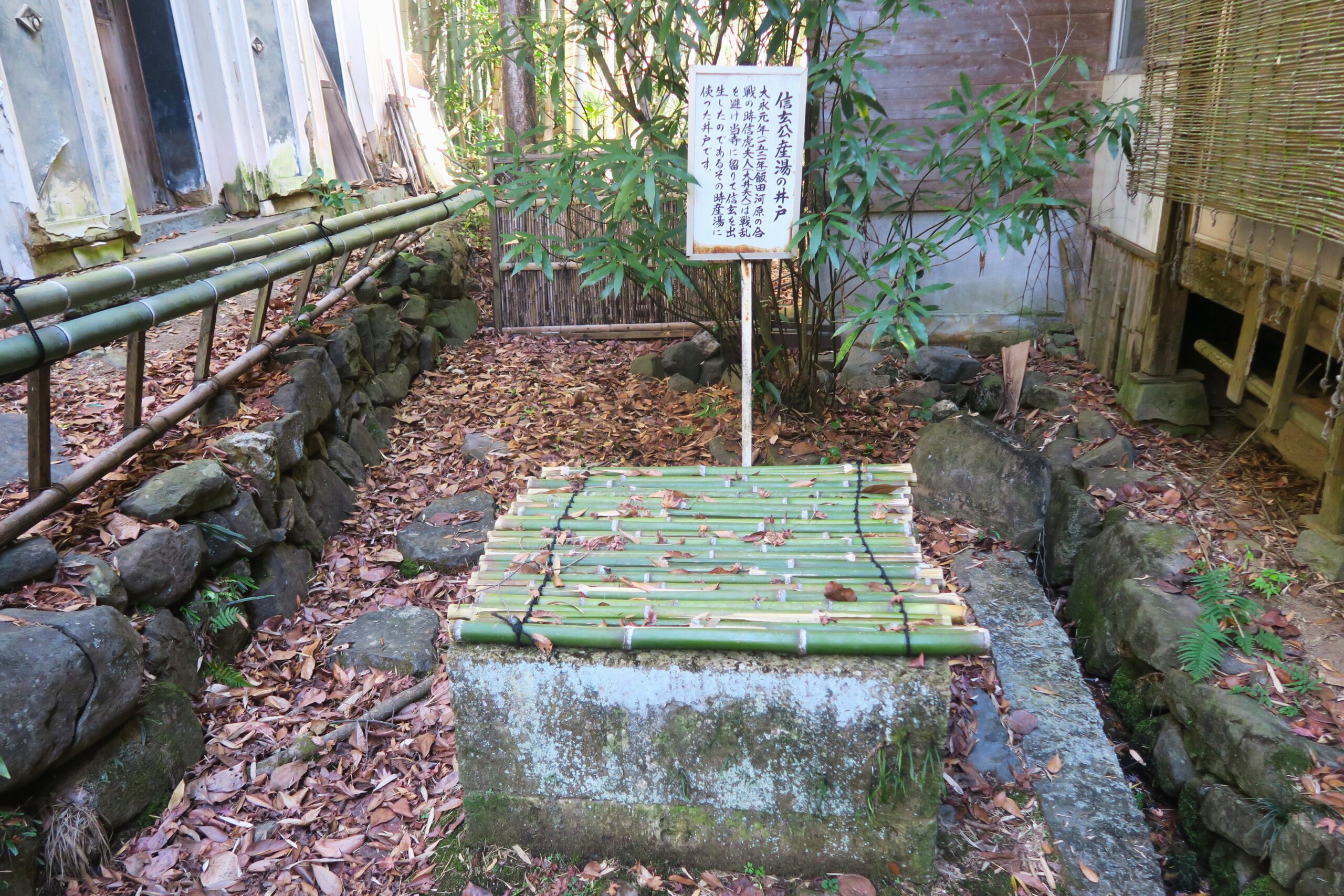 石水寺物語には、大永元年(1521)飯田河原の合戦時、要害山城に避難した大井の方がこの寺で信玄を出産したと載せてあり、産湯の水を汲んだとされる井戸が残っています。