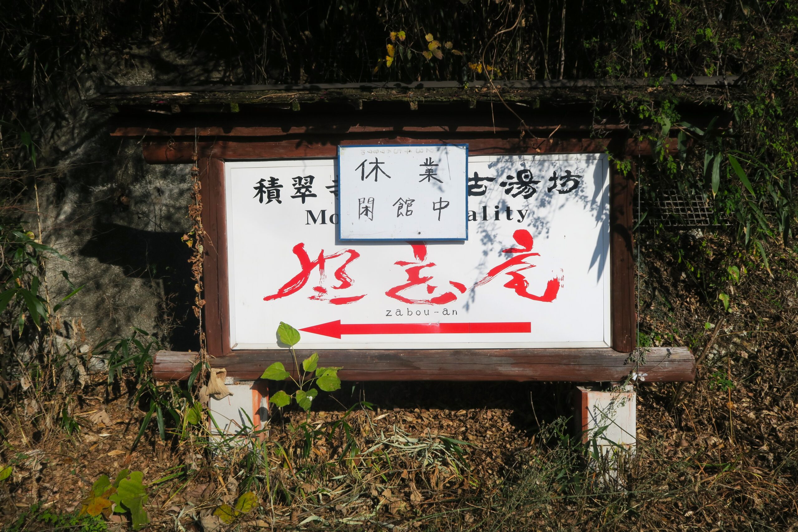 ここから要害山の登山口までは、徒歩10分ほどで着きます。途中には廃館になってしまった積翠寺温泉の2軒の宿があります。鎌倉時代に発見され信玄の隠し湯のひとつと伝えられるこの温泉は、要害山麓の閑静な山あいにあり、尾根を隔てて西方の養曽沢にあるのを古湯坊坐忘庵、東方の要害山入口に位置するのを要害といいました。泉温は15~20度と低温ですが、緑ばんを含み、リュウマチや神経痛などに効果があるといわれ、その昔武田の傷病兵を癒したといいます。今では要害はシルバーセンターに古湯坊は閉館中で再開が待たれます。