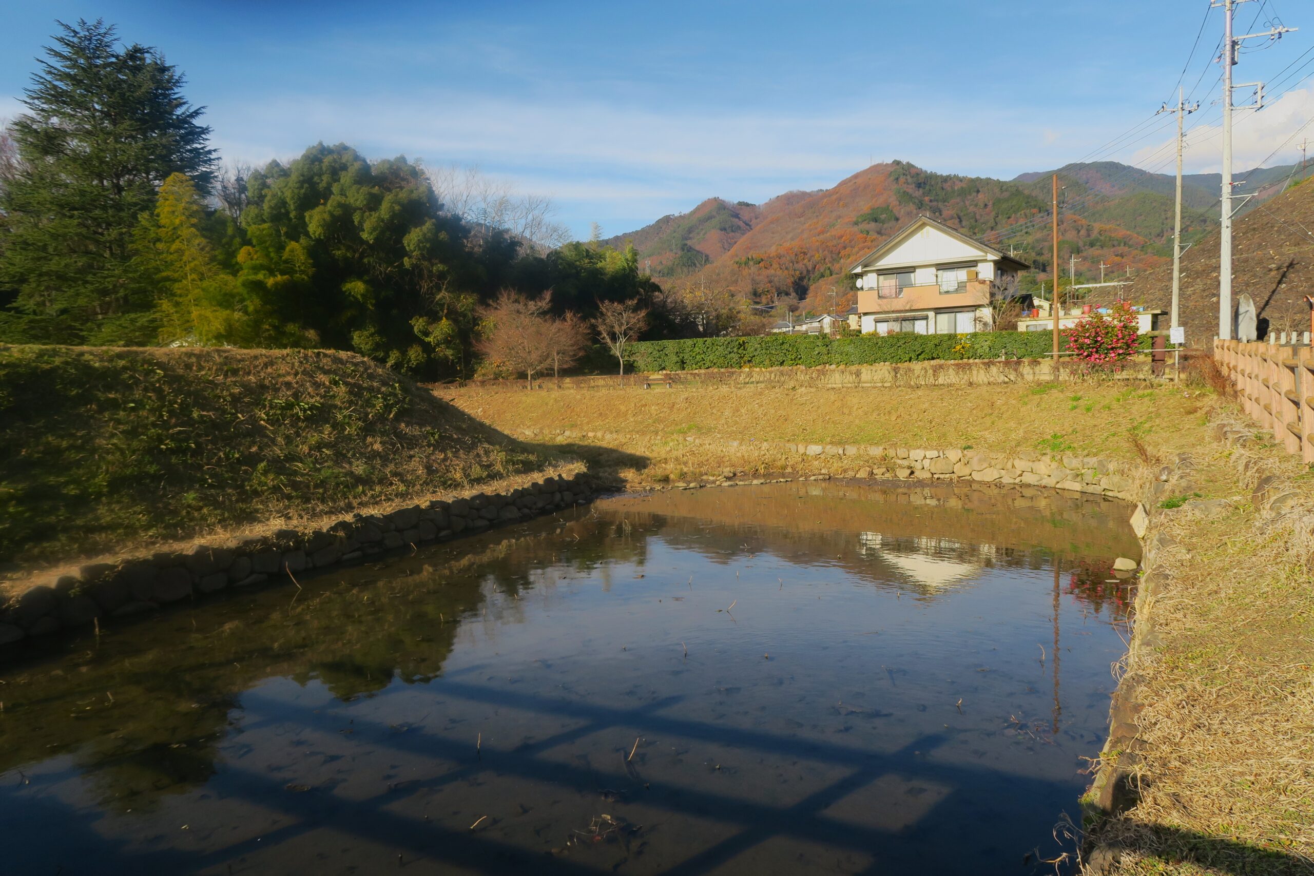 近年の調査で、武田氏の築城技術の特徴と言われる三日月堀が、躑躅ヶ崎館の大手口を三日月状に丸く覆うような形で確認されました。堀は内側に土塁をともなう丸馬出と呼ばれる敵から館を守る防御施設の一部で、全長約30m、幅約4~5m、深さ約2.5mと推定されています。また『甲陽軍艦』には山本勘助が信玄の前で馬出の重要性を披露したという興味深い記述もあり、大阪の陣で真田幸村が造った真田丸はこの丸馬出の砦です。