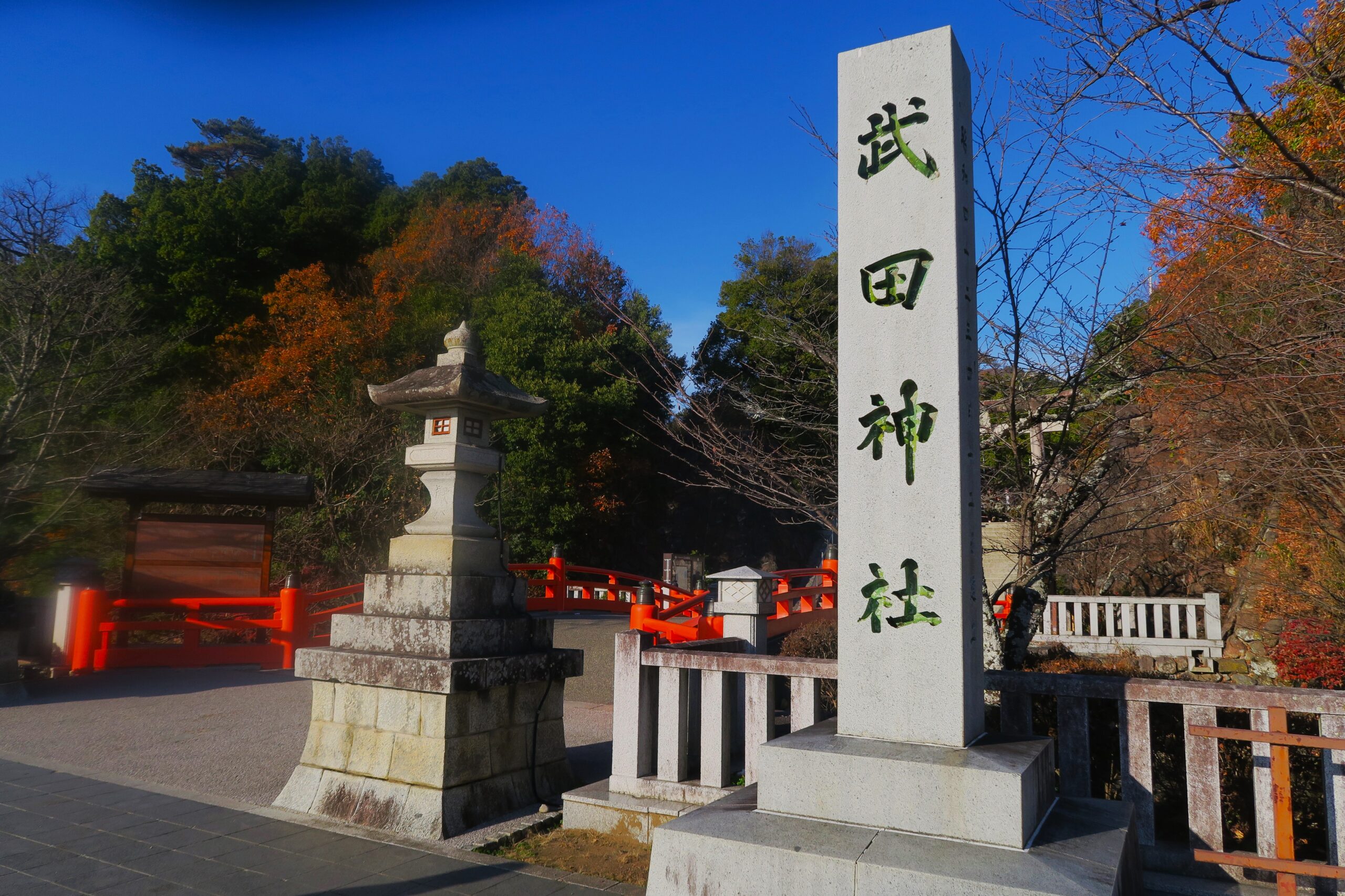 突き当りが館跡、甲斐国総鎮護である武田神社です。神橋が架かる堀や土塁に躑躅ヶ崎館の面影が残ります。南西に向かって緩やかに傾斜する甲府盆地の北辺である太良峠に発する相川の扇状地の頂部に城館は置かれ、北は山々がそびえ立ち、東西も峰に囲まれるいわば背後から攻撃されない立地でした。日本100名城に選定されている戦国大名武田信玄の居館として名高い武田氏館跡(躑躅ヶ崎館跡)は、父信虎が永正16年(1519)に石和から本拠を移して築いた守護館で、以後、勝頼の新府城移転まで、親子三代、60有余年にわたって領国支配の中心として使用されました。また家臣団屋敷群と商人たちの根小屋が一体化した戦国城下町の形態を今に伝えています。甲府とは甲斐の府中という意味で、信虎が石和からこの地に居所を移した時に命名されました。